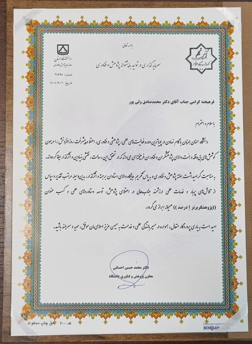 دکتر محمدصادق ولی پور: پژوهشگر پراستناد یک درصد و دو درصد برتر دنیا، پژوهشگر برتر ۵ درصد دانشگاه