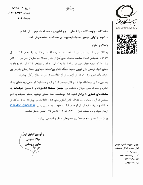 دومین مسابقه ایده پردازی با موضوع خودمختاری فضایی