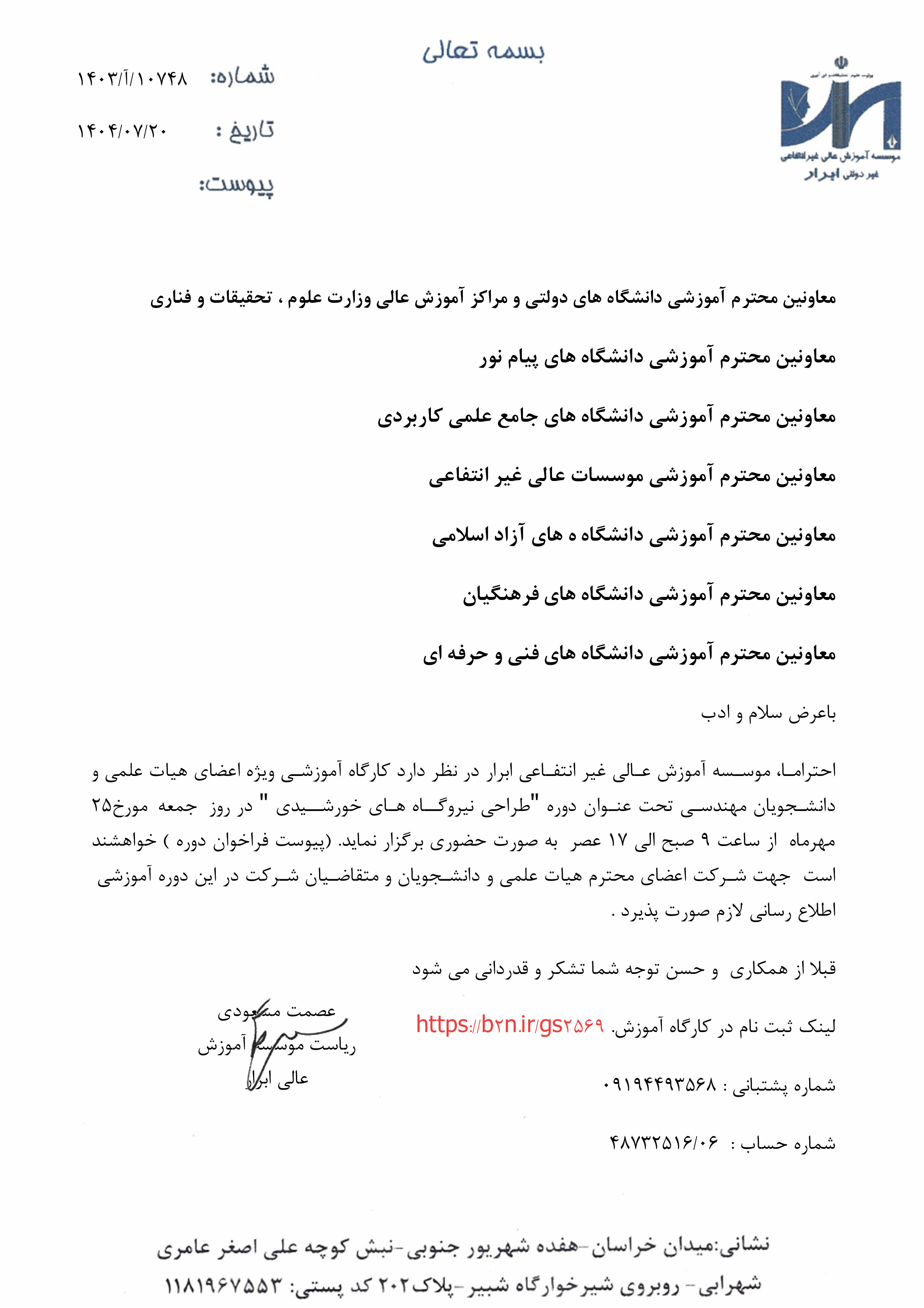 کارگاه آموزشی طراحی نیروگاه های خورشیدی